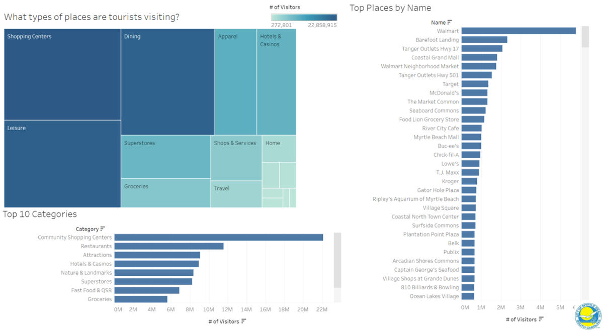 Analyzed data set for the Myrtle Beach, SC City Planning Department to gain insights on which businesses tourists are most commonly visiting to determine what is drawing tourists to the area and where resources should be allocated.